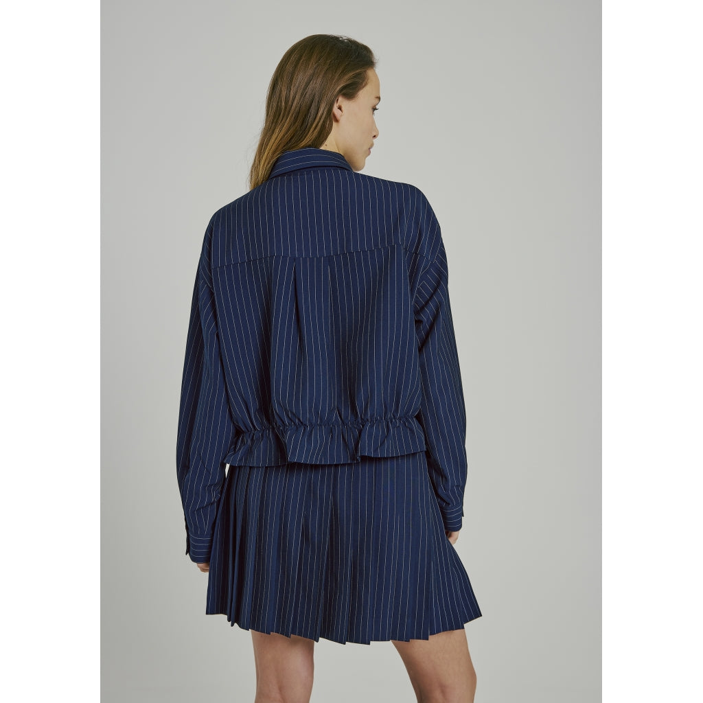Norr W Neo Pinstripe Short Shirt Navy Stripe