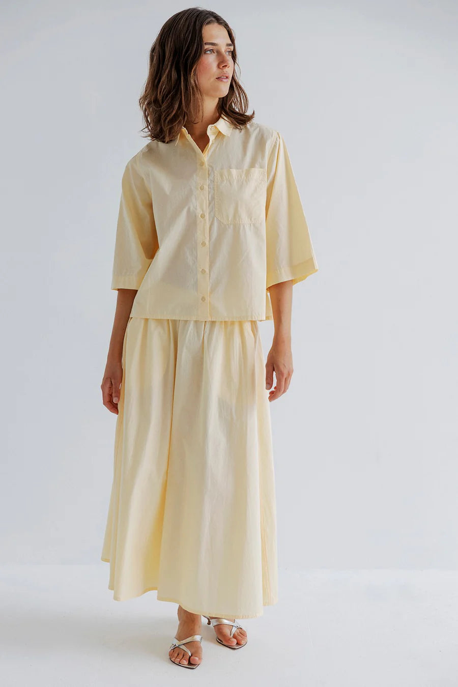 HAILEY er en nederdel i midi-længde med lommer og elastisk talje. Nederdelen er en del af vores basis kollektion og er lavet af 100% økologisk bomuld.