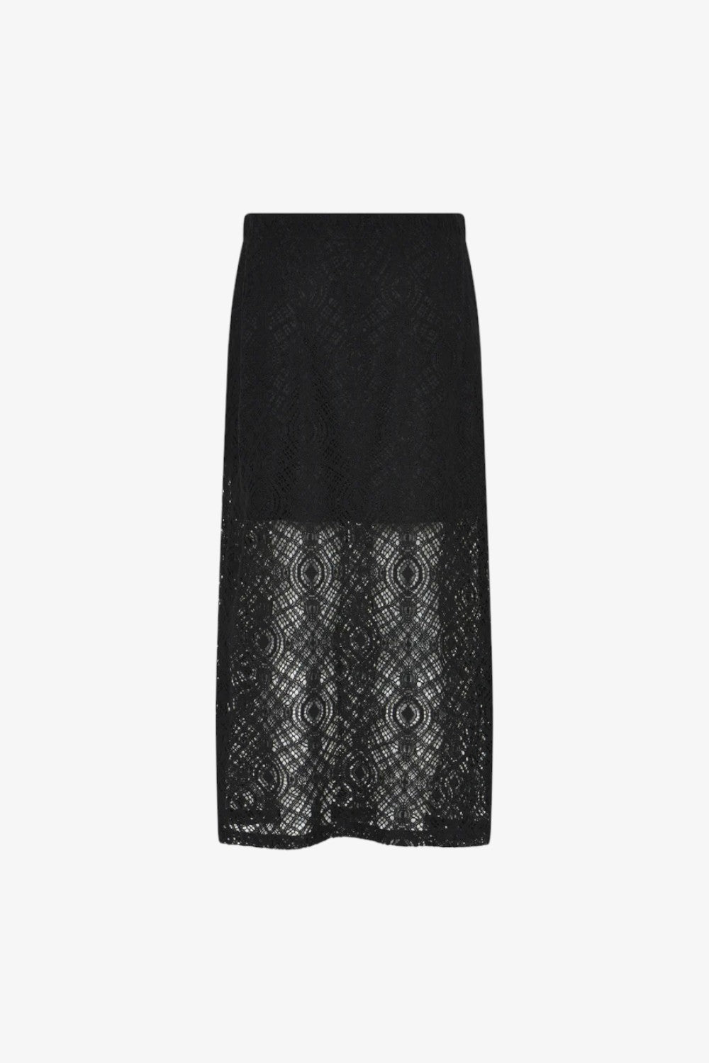 En lang blondenederdel med elastisk talje, lavet med bomuld.