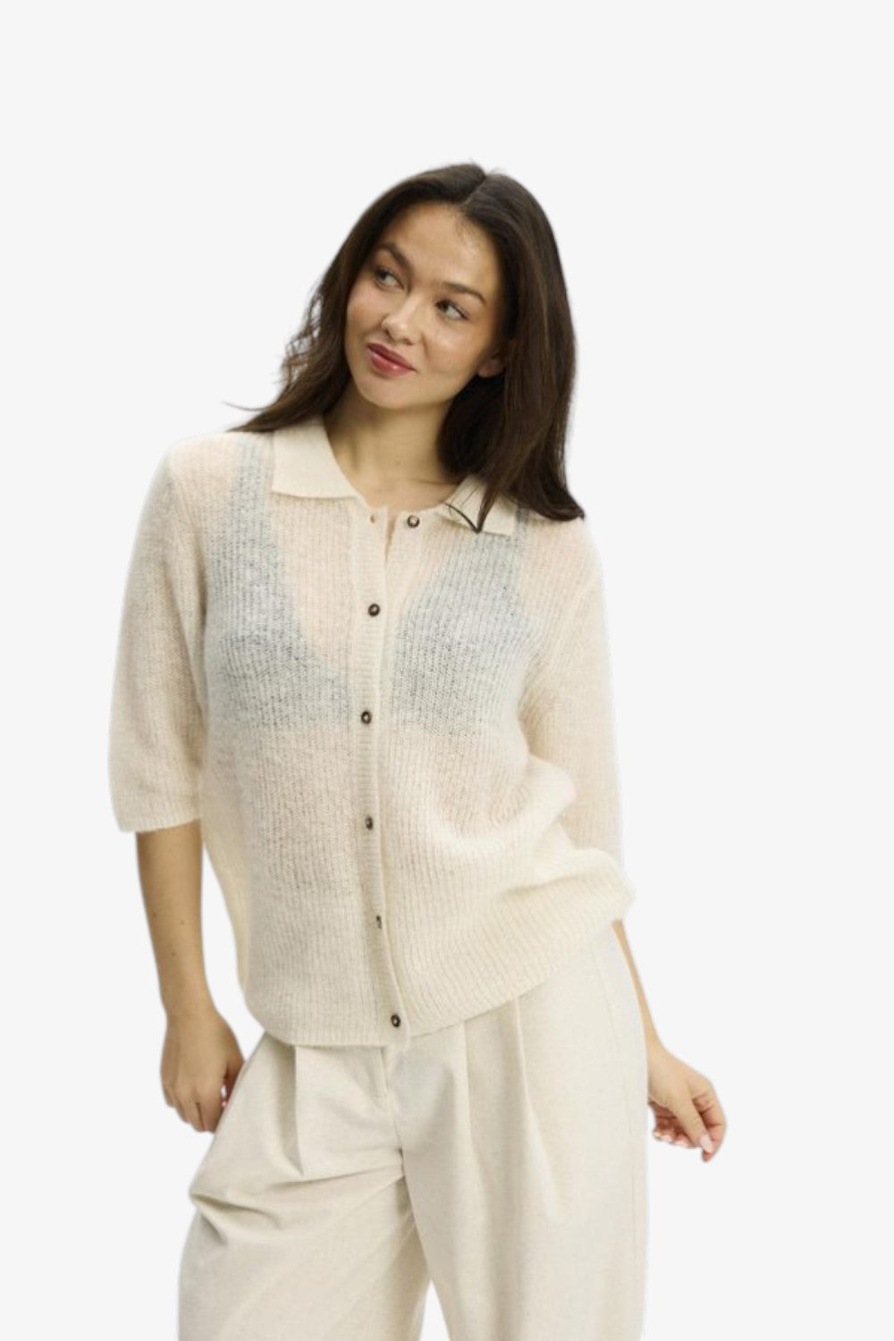 Iris Cardigan er strikket i en eksklusiv blanding af polyamid, uld og alpaka, som giver en let, blød og varm kvalitet. Cardiganen har et klassisk design med knaplukning foran, der skaber et feminint og tidløst udtryk.