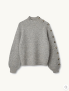 Studio Rullekrave er en blød strik i uld med høj hals og knaplukning ned langs den ene side. Designet er enkelt og funktionelt med fokus på komfort og varme.