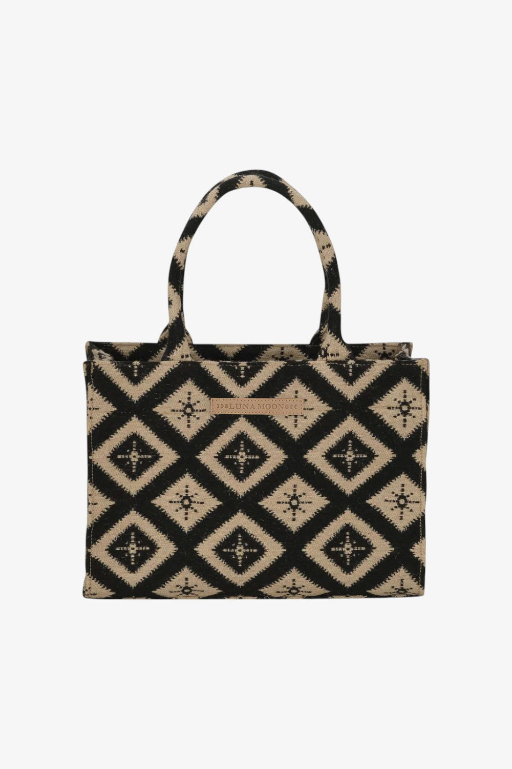 Tasken er lavet af 50% jute, 40% økologisk bomuld og 10% viskose.
