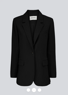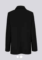 Gale blazer i sort har et klassisk og elegant design, som kommer til udtryk i den flotte reverskrave og den lange pasform. Blazeren har knaplukning fortil og en brystlomme i venstre side.