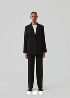 Modellen er 177 cm og har en størrelse S/36 på. Blazeren er oversize. Vi anbefaler at gå en størrelse ned, hvis du ikke vil have den for stor.