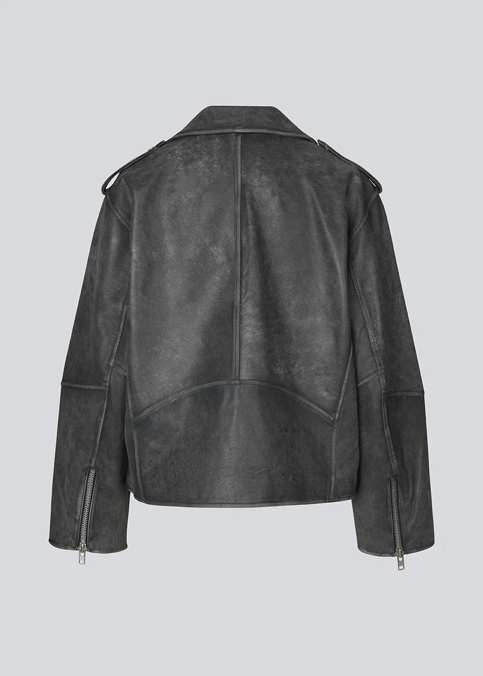 - Design: Skæv lynlåslukning foran og lapeller med trykknapper for et biker-inspireret udtryk.