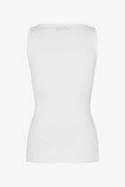Ærmeløs hvid top i ribbed bomuldsjersey. Igormd tank top har en tætsiddende pasform og en rund halsudskæring.