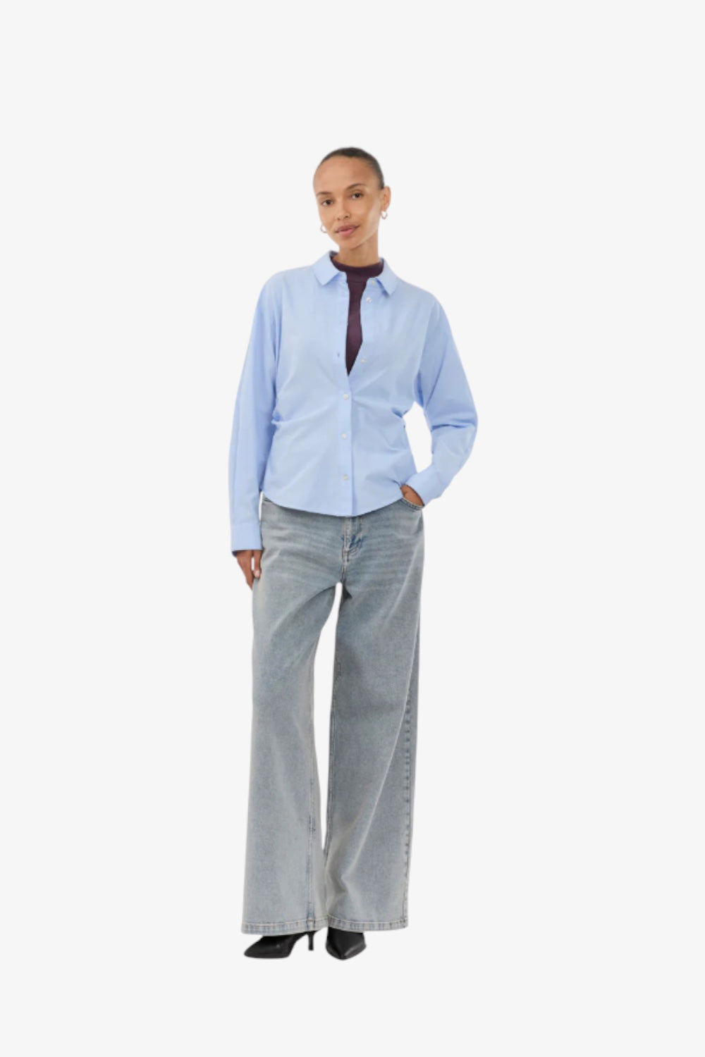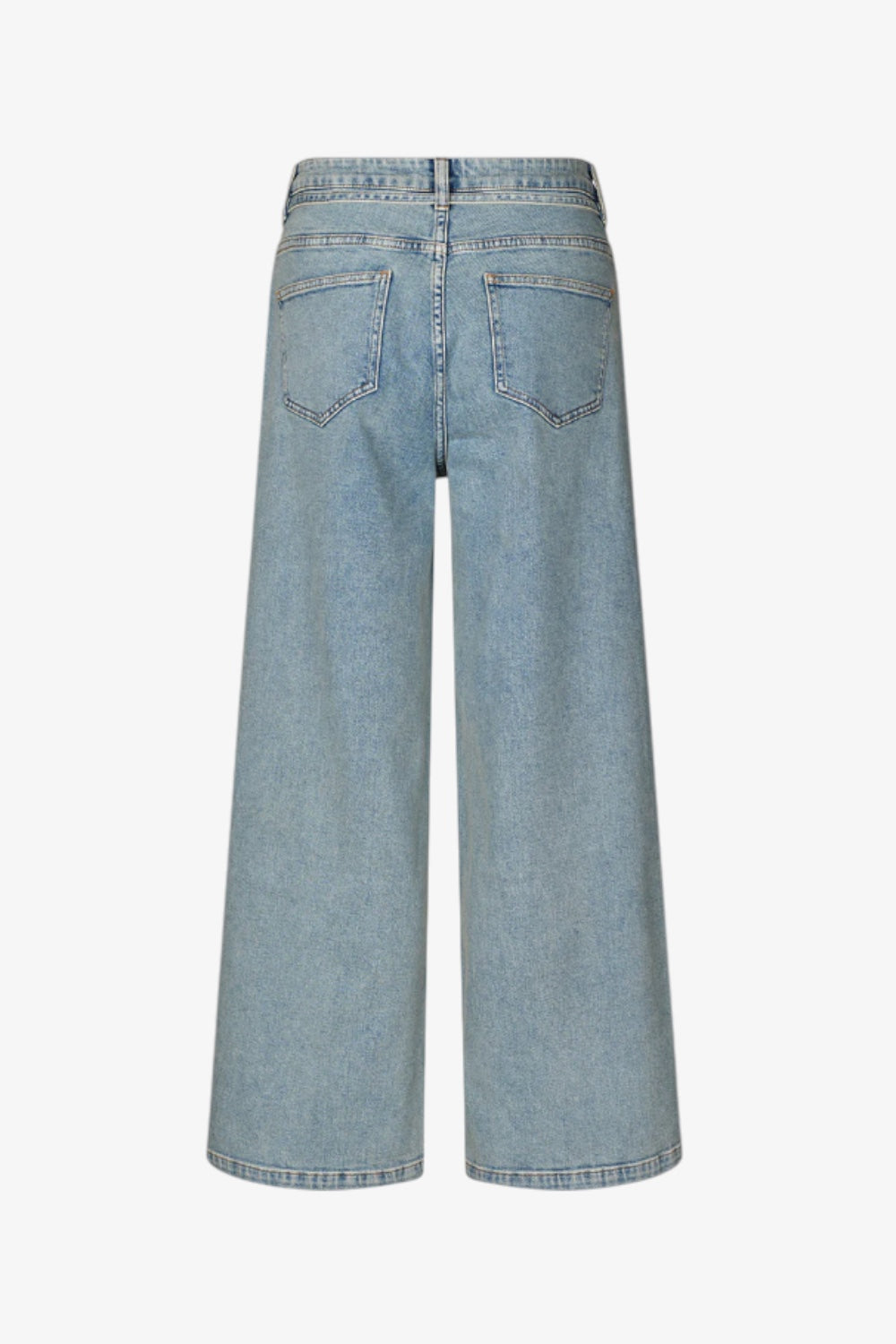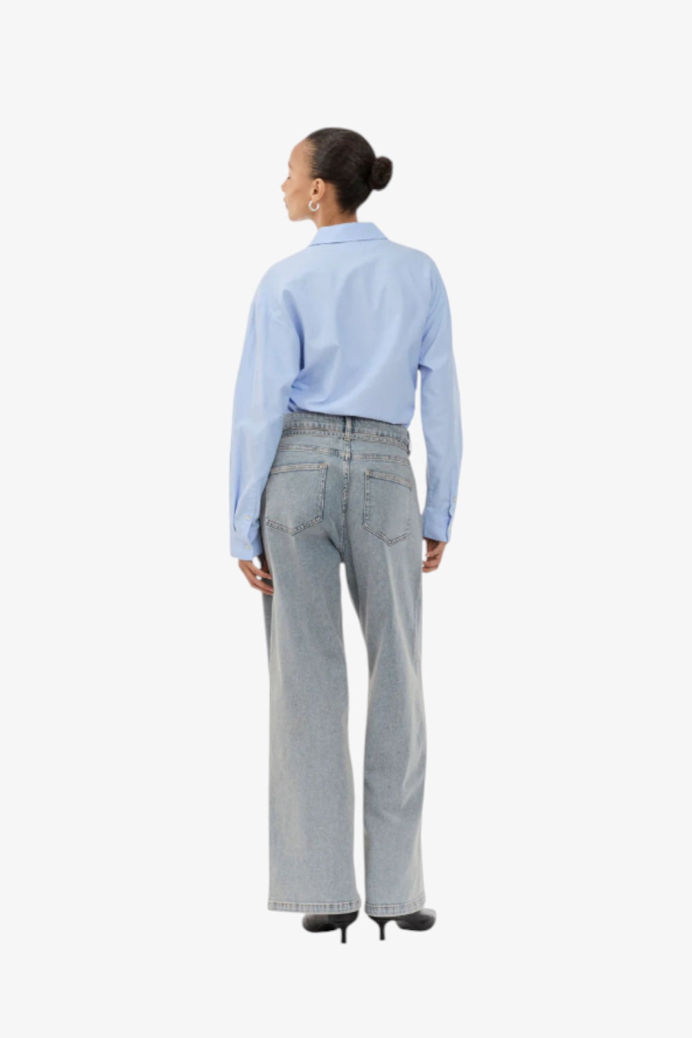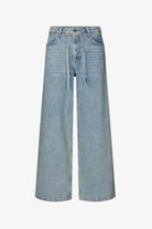 Jeans med vidde i bomuldsdenim i lyseblå. IsoldeMD pants har en høj talje for- og baglommer og et bindebånd i taljen.