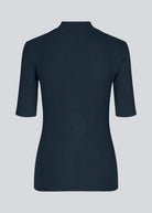 Krown T-shirten er en stilren og alsidig basisbluse, der kombinerer komfort og elegance. Den tætsiddende pasform og den høje hals giver et moderne udtryk, mens ribkvaliteten tilføjer struktur og en luksuriøs følelse.