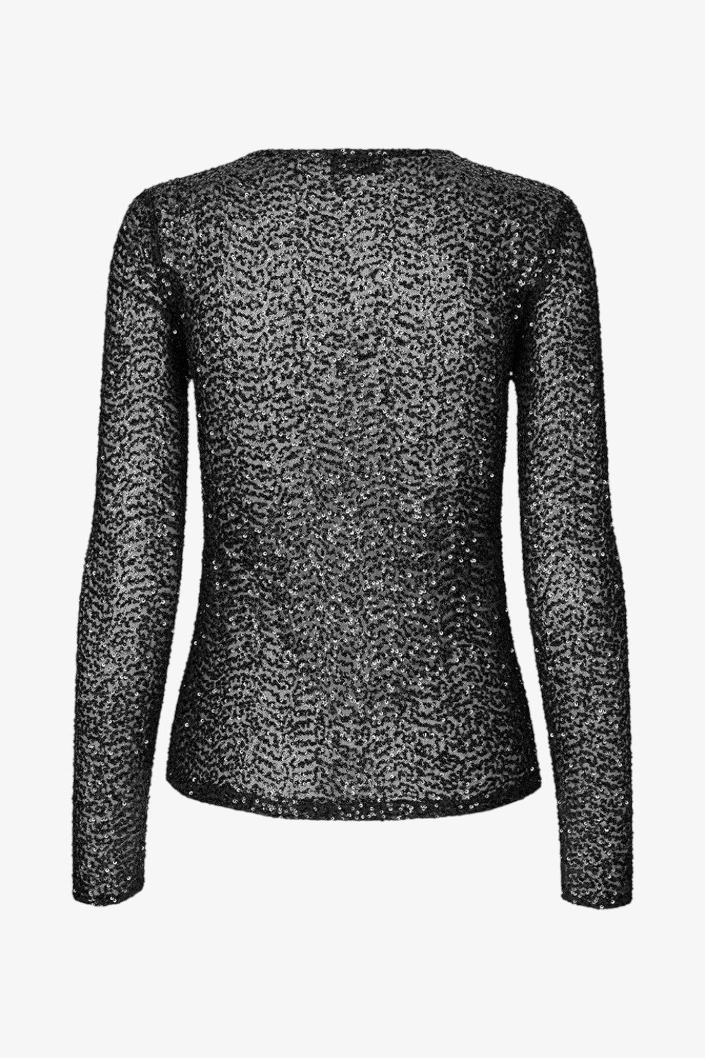 Sort langærmet top med pailletter. LaraMD top er figursyet med rund hals og langeærmer.