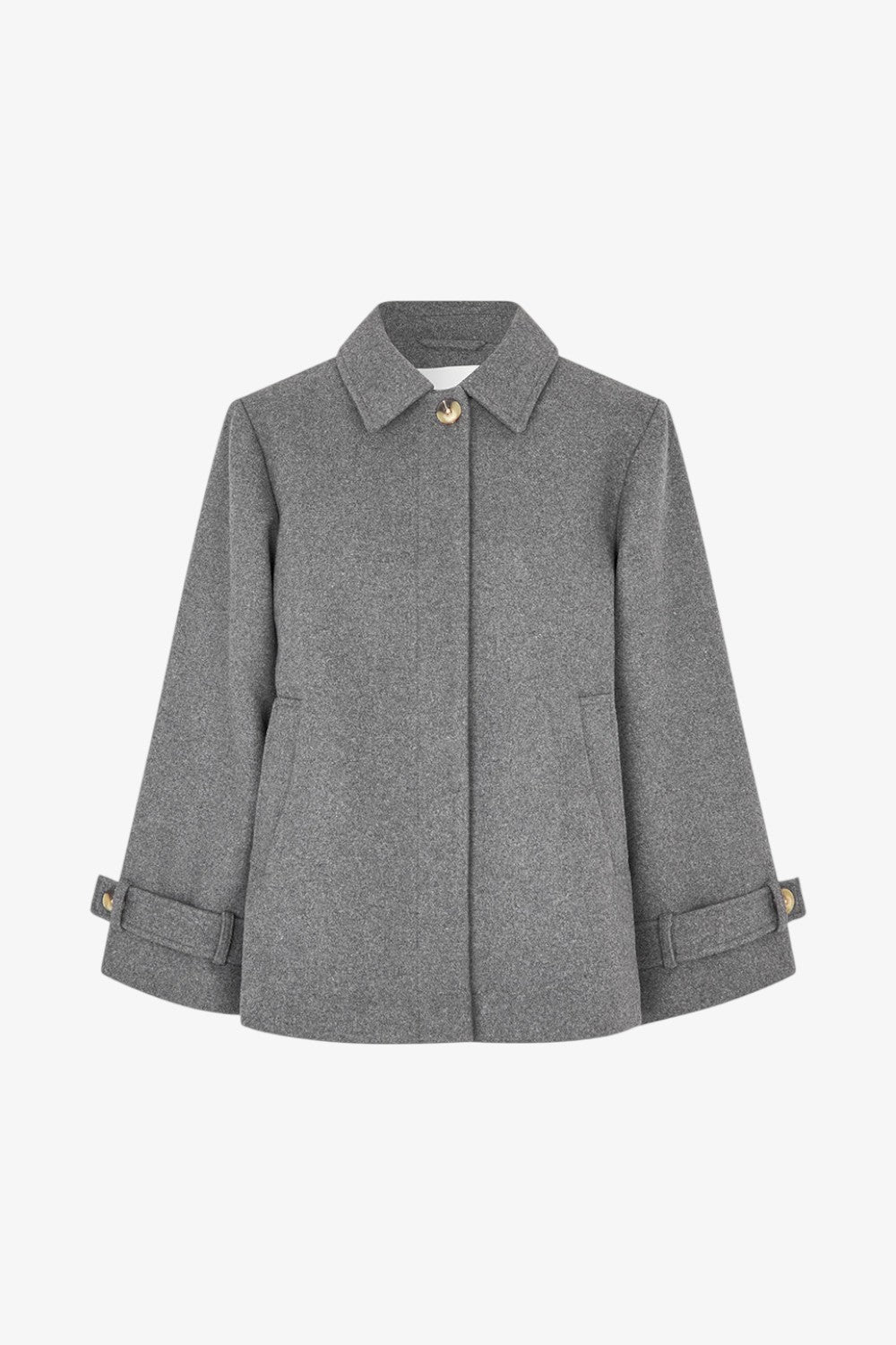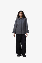 Klassisk kort jakke i uldblanding. Ofiamd jacket har en afslappet pasform, skjult knappelukning og krave. Modellen er 175 cm og har en str. s/36 på.