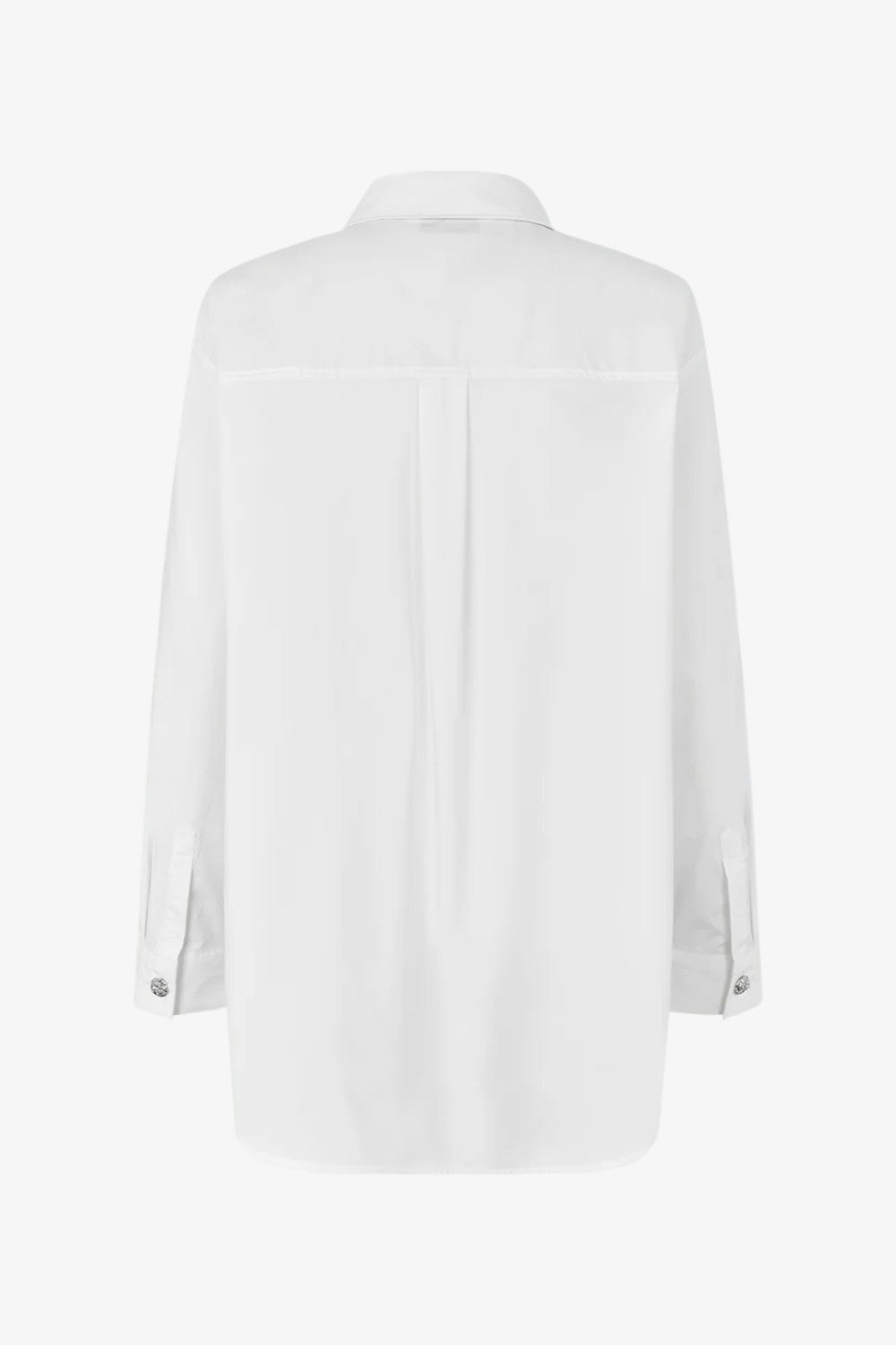 Hvid lang bomulds skjorte. Rowanmd shirt har en klassisk krave og smukke dekorative knapper, der giver skjorten et feminint og cool udtryk
