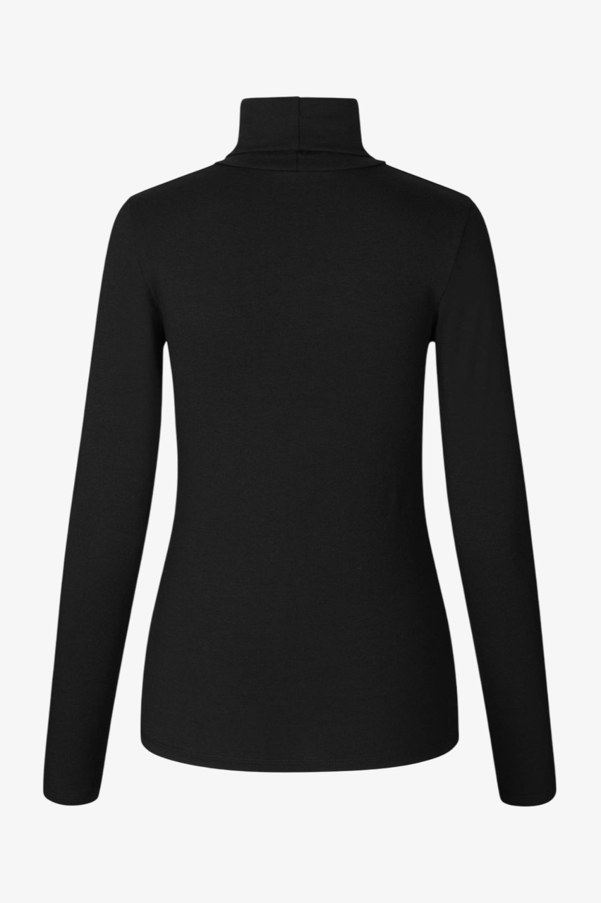 Denne højhalsede striktrøje kombinerer enkel elegance med en tætsiddende pasform, der fremhæver silhuetten. Det bløde materiale sikrer både komfort og stil, hvilket gør den til et alsidigt valg til enhver lejlighed.