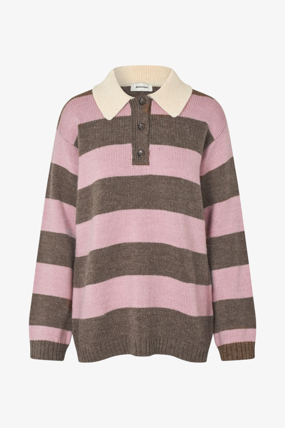 Blød strik polo med et oversize look. Pelhammd stripe polo har lange brede ærmer og skjortekrave med stolpeluknining.