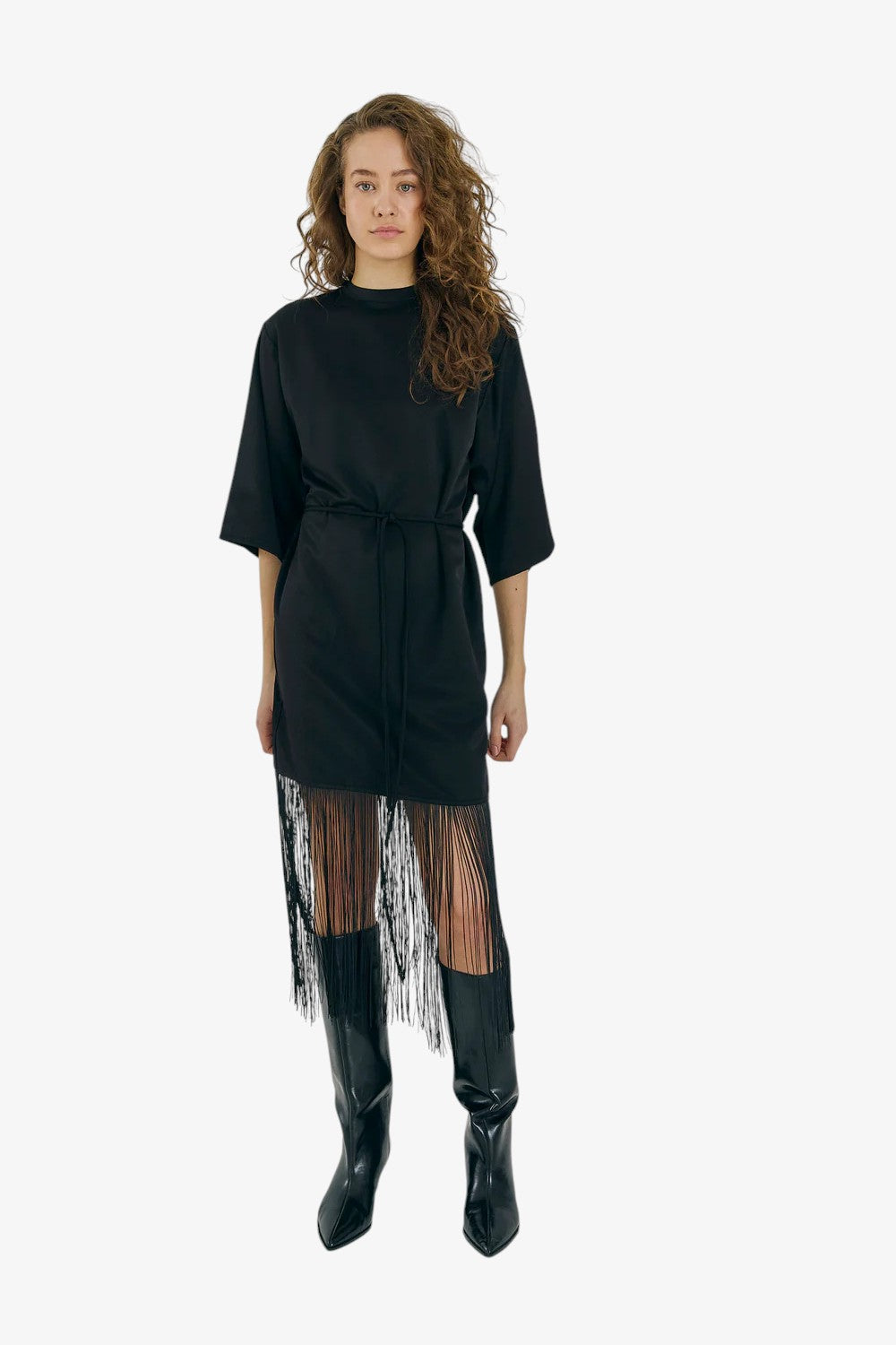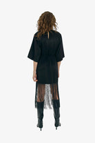 En afslappet t-shirt-kjole med et moderne twist. Designet med en gennemsigtig mesh-detalje nederst, der giver et lag-på-lag udtryk med både kant og elegance.