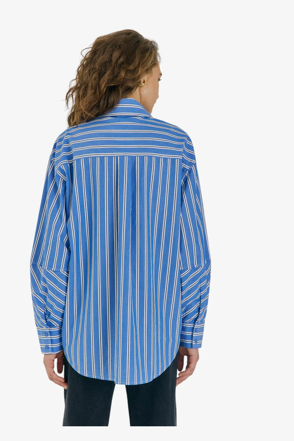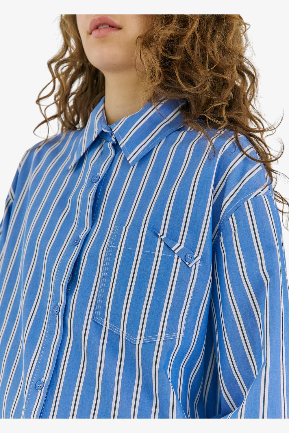 Oversized bomuldsskjorte med klassiske striber. Skjorten har sænkede skuldre og knaplukning foran – ideel til lag-på-lag eller et afslappet, men stilrent look.