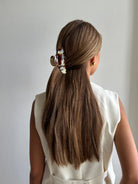 Carver Claw er et større håraccessory, der er ideelt til at samle hele håret, samtidig med at det tilfører et cool og moderne udtryk til frisuren. Klemmen kombinerer funktionalitet med stil og er perfekt til både hverdag og afslappede looks.