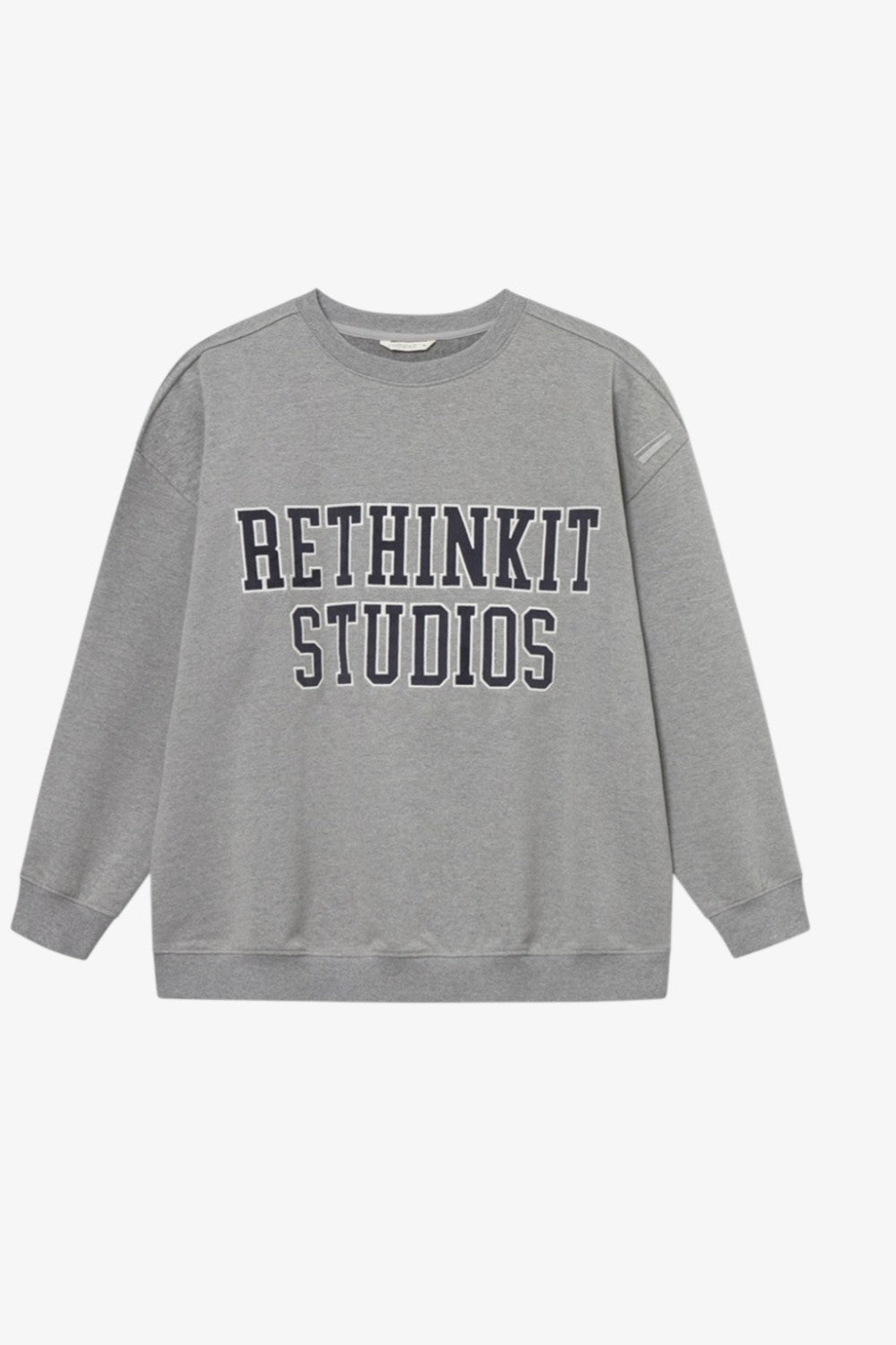 Denne klassiske sweatshirt med rund hals har et markant Rethinkit-logo i et college-inspireret design. Det store applikerede logo på brystet er lavet med fløjl og kontrastsyninger, der tilfører både tekstur og karakter. Indersiden er blødt opkradset for ekstra varme og komfort – perfekt til både afslappede dage og stilfulde hverdagslooks.
