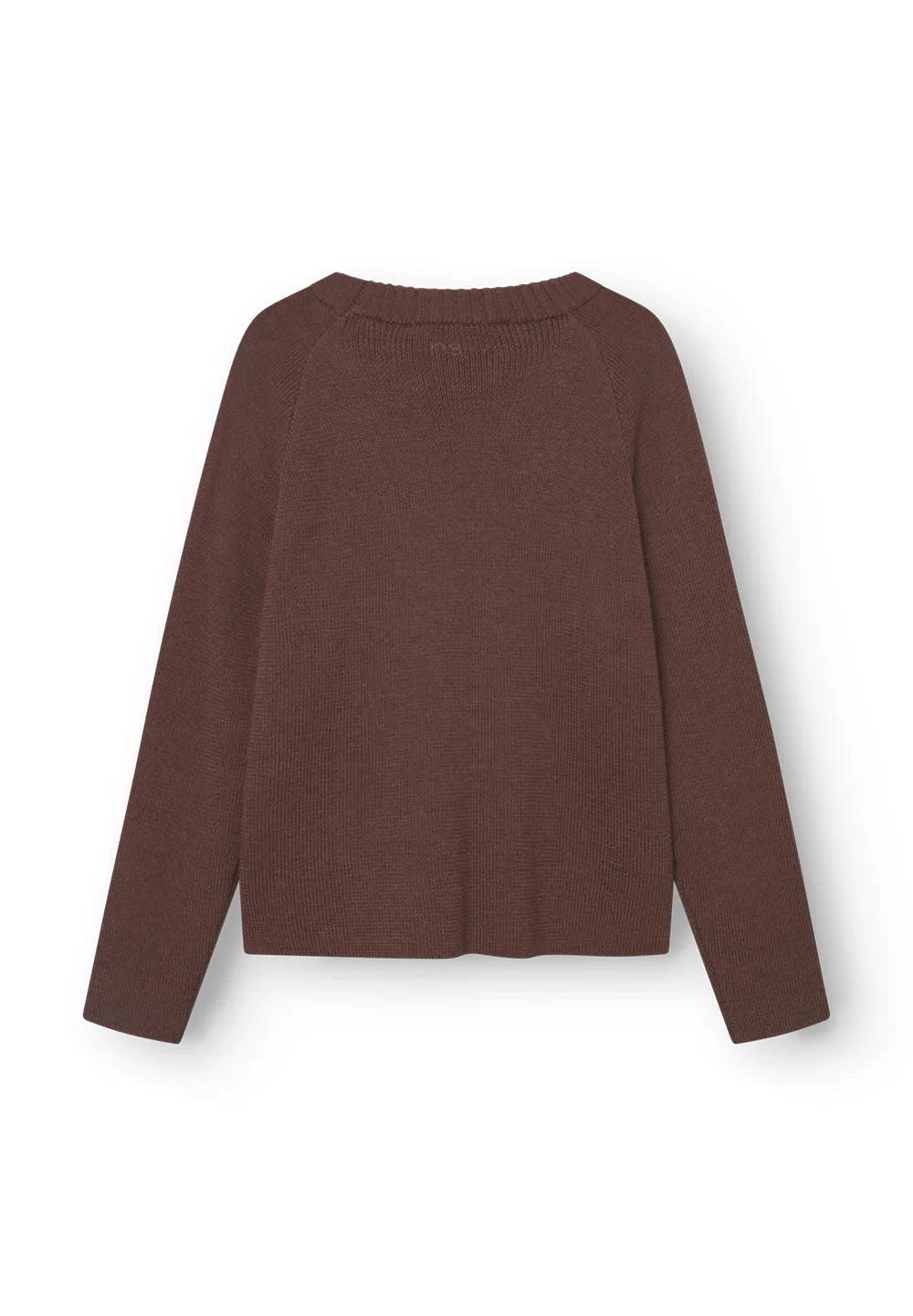 Denne kraftige uldtrøje er ideel til de køligere dage og kombinerer komfort med varme. Den er lavet i en hyggelig og slidstærk merino uldstrik og har brede, løstsiddende ærmer samt en afslappet pasform. Det klassiske og tidløse design passer ubesværet til både jeans og leggings.