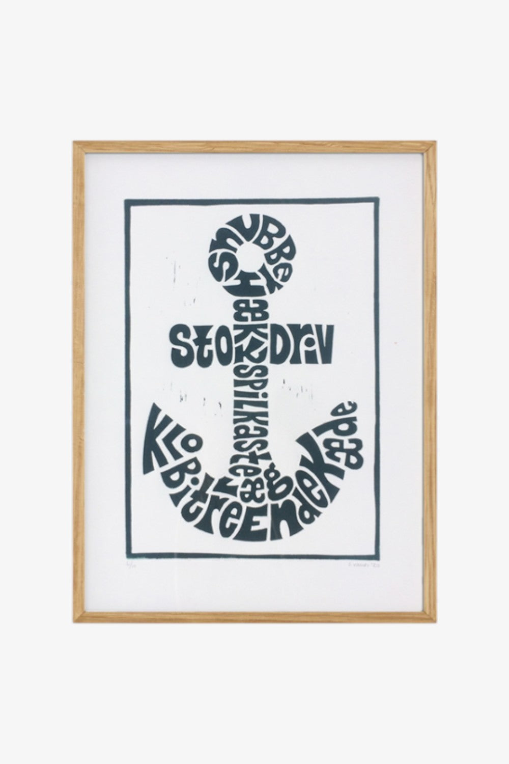 Svanes Linoliumstryk Anker Petroliumsblå UDEN RAMME